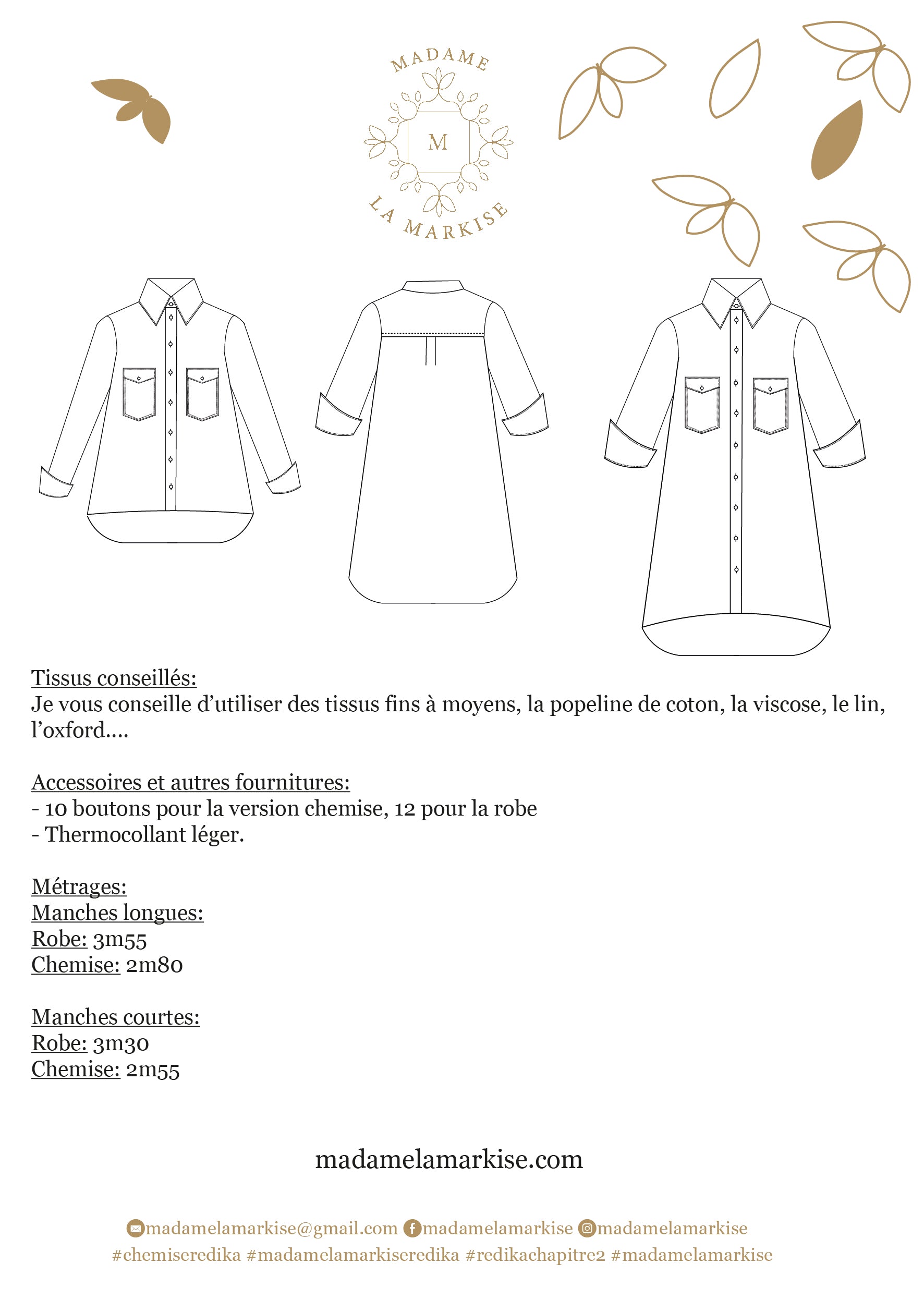 Patron couture: REDIKA, chapitre II : La chemise/robe - Format PDF